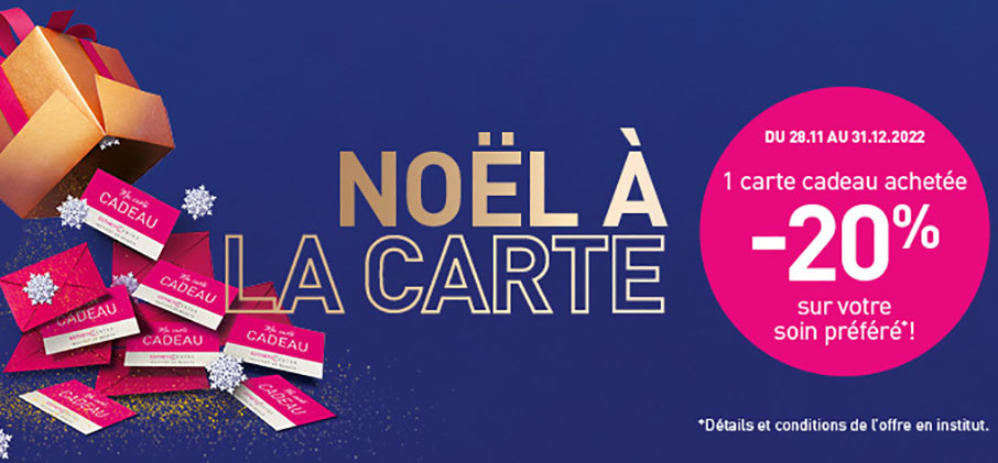 1 carte cadeau achetée = -20% sur votre soin préféré